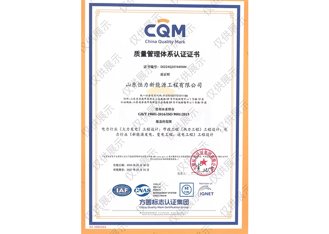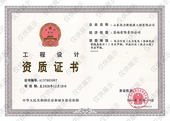 Qualification of grade A for thermal power designing & EPC project and heating net designing & EPC project