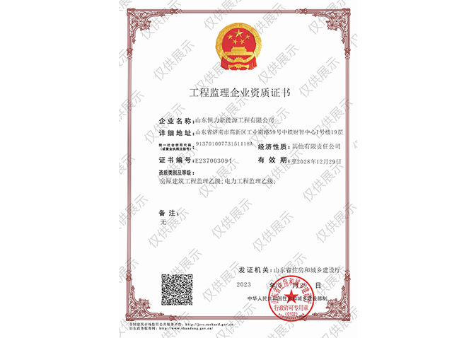 Qualification of grade B for new energy power project and power transmission & transformation project